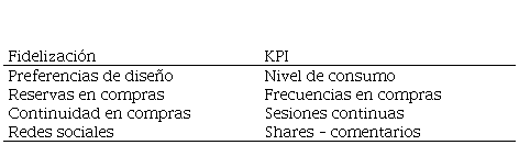 En la etapa de fidelización, generalmente se obtiene el mercado definido ante el cual mediante las preferencias de diseños y colores se establece el contacto final para determinar el nivel de consumo y continuidad de compras de las macanas ofertadas para ello es importante definir los KPI-. Ver tabla 8.