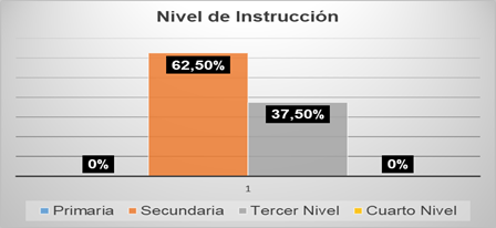En referencia al nivel de Instrucción la asociación cuenta con un 62.5% de personal terminado la secundaria ya que muchos de ellos están conformados por los socios, por su calificación artesanal, y el 37.5% se encuentra conformado por algunos diseñadores de joyas de edad joven y personal administrativo. (Véase Figura 3)