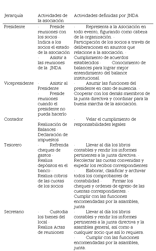 Para conocer la estructura del proyecto se analiza a los puestos desempeñado por los directivos de la asociación, estableciendo funciones, habilidades y destrezas requeridas, para el oportuno cumplimento en sus labores, determinando la detección de necesidades de formación y la correcta elaboración de programas de capacitación.