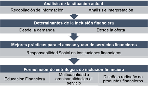 En el documento se presenta a la inclusión financiera, como parte del desarrollo socio económico de las personas de escasos recursos. Promover el acceso de productos y servicios financieros son un factor fundamental para la generación de ese desarrollo, y no solo para la población de bajos ingresos, sino también para pequeños, microempresarios e informales, siendo un derecho para la población interrelacionarse con las instituciones del sistema financiero. Para contextualizar la inclusión financiera, se menciona la definición que realiza la Asociación Global para la Inclusión Financiera (GPFI, por sus siglas en inglés) y el Grupo Consultivo de Ayuda a los Pobres (CGAP, por sus siglas en inglés) que consideran la siguiente definición de inclusión financiera: