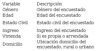 Para la recolección de información, se han definido grupos de variables que servirán para encontrar las relaciones necesarias e interpretar los resultados obtenidos. Explorar las características sociodemográficas de la población objeto de estudio, permitirá encontrar aspectos comunes entre los investigados que se utilizará para la segmentación de estrategias a formularse, características que se presentan en la siguiente tabla:
