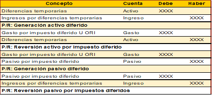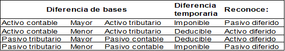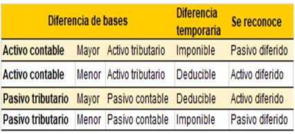 Dado lo anterior, se debe anotar que las diferencias temporarias imponibles generan pasivos diferidos y las diferencias temporarias deducibles generan activos por impuestos diferidos.