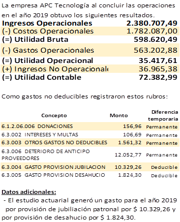 La figura 12 muestra los datos obtenidos de la empresa, a partir de los cuales se realizan los asientos contables correspondientes, considerando los datos adicionales.