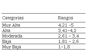 A continuación, se presenta el análisis de los resultados obtenidos en los cuestionarios aplicados a la población total de estudio, lo cual permitirá dar respuesta los objetivos específicos al interpretar las puntuaciones de cada indicador junto a sus respectivos ítems. En este sentido, se expresarán las puntuaciones de los sujetos en determinadas tablas para así lograr un diagnóstico certero en cuanto a la realidad de dicha población, al aplicar la estadística descriptiva mediante matrices de doble entrada utilizando el programa computarizado de Excel y calculando las frecuencias relativa y absoluta para ubicar la puntuación de la media tomando como referencia el siguiente baremo de interpretación: