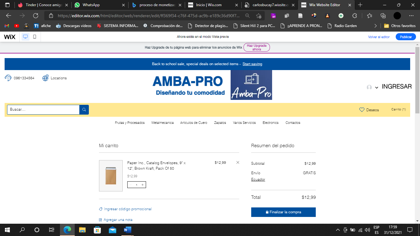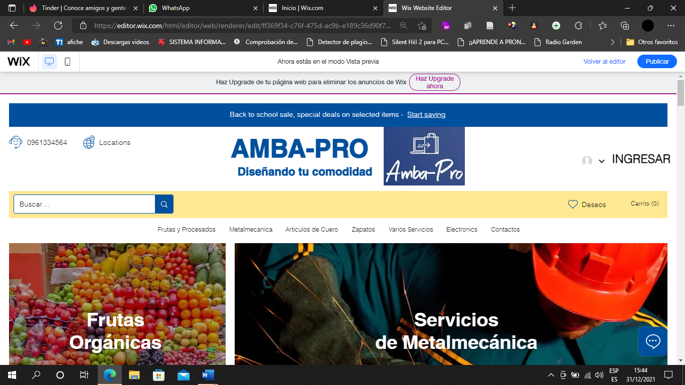 Esta imagen es una vista simplificada del diseño de la página web enfocada en la empresa Amba-Pro, la cual agrupa a todos los bienes y servicios producidos por las Mipymes de la ciudad de Ambato, agrupadas por categorías las cuales están presentes en la barra de navegación.