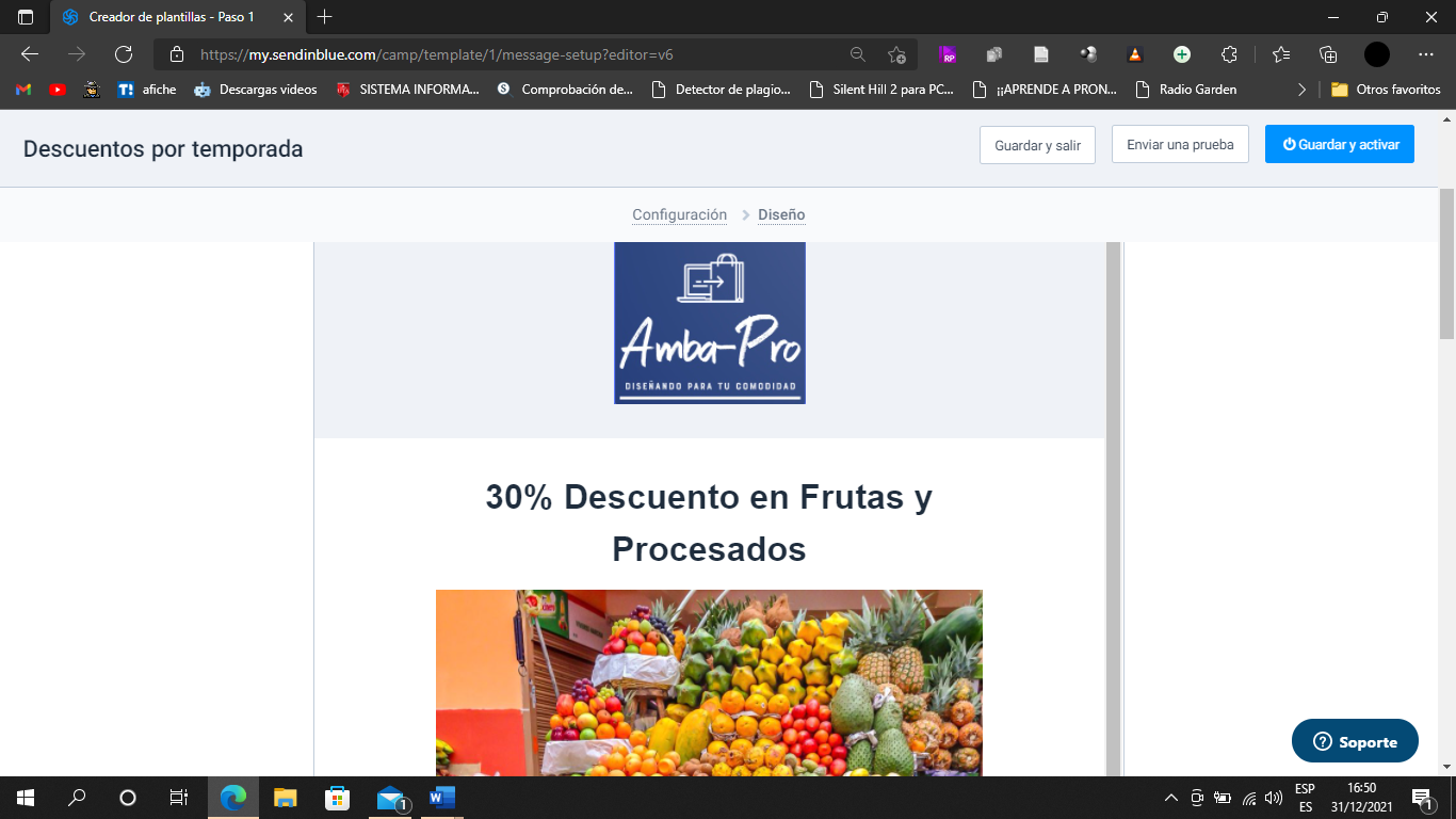 La figura expuesta muestra el cuerpo de un correo electrónico en el cual se detallan promociones sobre un determinado producto, en este caso el descuento a las frutas y sus respectivos procesados. Este correo es enviado a aquellos usuarios que fueron registrados previamente en las aplicaciones web y móviles de la empresa.