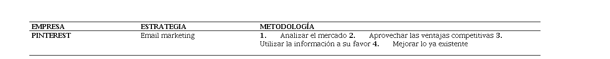 Observación: Inicialmente, Pinterest lograba que los usuarios de email se registren en su plataforma mediante mensajes por correo, que se tomaba de la base de datos de Facebook, esto lo lograron desarrollando una aplicación con la que eran capaces de acceder al listado de contactos del usuario en el momento del registro. Así, una vez el usuario se había registrado en la plataforma, Pinterest enviaba un correo electrónico animando a sus contactos a probar la red social y se registrase en Pinterest sin casi darse cuenta. Pinterest es conocida en el mundo de la startups por haber sido la red social con el crecimiento más rápido de la historia, dado que empleó una serie de tácticas de Growth Hacking.