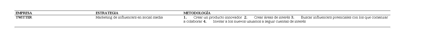 Tabla 5. Análisis estrategia empleada por TWITTER.