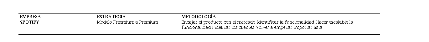 Observación: Spotify implemento su estrategia de Freemium como un enganche para que las personas tengan una experiencia limitada de su producto y así crear una necesidad al cliente de buscar más contenido y contratar el plan pagado.