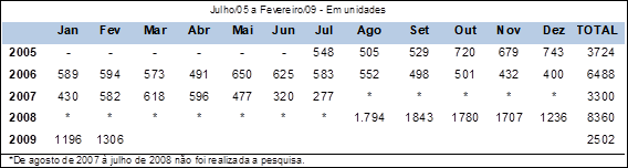 Abaixo, destacam-se outros resultados apurados no mês de janeiro de 2009: dos imóveis ofertados, seguem os números de vendas totais, na Tabela 4.