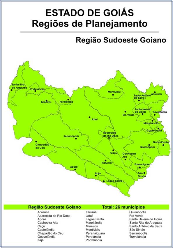 INSTITUTO MAURO BORGES DE ESTATÍSTICAS E ESTUDOS SOCIOECONÔMICOS - IMB. Regiões de Planejamento do Estado de Goiás - 2006: Região Sudoeste Goiano. Goiânia: IMB, 2006.