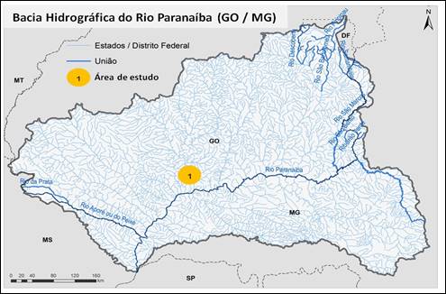 [...] é a segunda maior bacia da região hidrográfica do Rio Paraná com uma área de 222.767 km². A nascente do Rio Paranaíba situa-se na Mata da Corda, no Município de Rio Paranaíba/MG, e sua bacia de captação abrange parte dos estados de Goiás, Minas Gerais, Mato Grosso do Sul e Distrito Federal (FLAUZINO et al., 2010, p. 78).