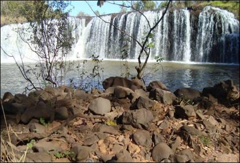 [...] é pouco representativa ao longo da região estudada, com ocorrências restritas a alguns divisores de água, nas proximidades de cidades como Quirinópolis, Rio Verde, Caçu, Itarumã e Cachoeira Alta. Esses sedimentos do período Cretáceo Superior caracterizam-se por apresentar um relevo movimentado, com feições residuais típicas apresentando escarpas abruptas. O contato da Formação Marília com a Formação Adamantina (Grupo Bauru) se faz de forma gradacional. São formas que chamam atenção da população local, por sua beleza e destaque na paisagem regional, sendo utilizadas para práticas de trilhas e observações dos lugares. Estão presentes ali várias cachoeiras (SANTOS, 2010, p. 110).