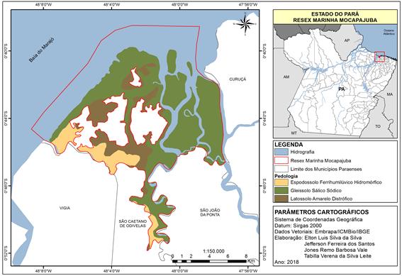 Na Resex encontram-se três tipos de solo (Figura 6), são eles: Espodossolo Ferrihumilúvico Hidromórfico, Gleissolo Sálico Sódico e Latossolo Amarelo Distrófico.