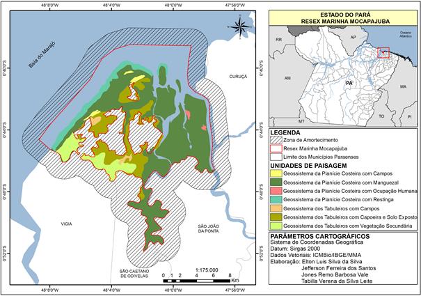 A produção do mapa de unidades de paisagem da Resex Marinha Mocapajuba teve como base a proposta metodológica de Monteiro (1987), que estabelece o uso das características naturais e de uso e cobertura da Terra para a definição de conjuntos ambientalmente solidários. Sendo assim, buscou-se elaborar um produto partindo do princípio geossistêmico, onde o resultado é a correlação entre os aspectos da sociedade e natureza. A nomenclatura das unidades de paisagem se baseou na classificação taxonômica e os critério tipológicos estabelecidos por Bertrand (2004).