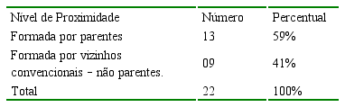 Nos locais de origem, conforme dados da tabela 2, as pessoas pesquisadas viviam predominantemente mais próximos aos parentes – 59%. Os outros 41% dos informantes que não eram parentes consanguíneos, disseram que tinham relações de amizades bem estabelecidas entre eles, chegando a considerá-los como família. Pelos relatos percebe-se que nas regiões de origem, o longo tempo de convívio com suas interações sociais, fizeram surgir uma identidade social, nos moldes do que assevera Marques (2005), com compartilhamento de valores, modo de agir e modo de provimento do sustento.