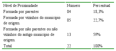Conforme tabela 3, no reassentamento de Araras, 59% das pessoas entrevistadas disseram que passaram a ter como vizinhos pessoas que não eram seus parentes ou que não foram seus vizinhos nas regiões em que moravam anteriormente. Apenas 18,3% dos informantes conseguiram manter-se próximos aos parentes, em Araras.
