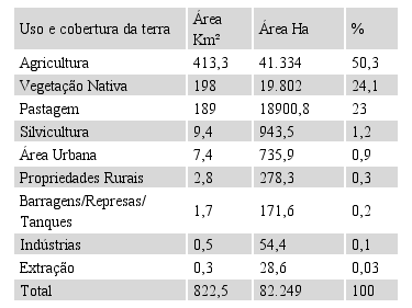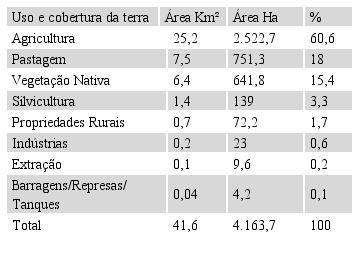 Os dados apresentados nesta pesquisa demonstram a importância de criação de uma APA na área de estudo, podendo influir na modificação e/ou adaptações do tipo de ocupação na referida bacia hidrográfica, bem como adoção de técnicas de manejo mais eficientes para a produção agropecuária, com menor impacto ao meio ambiente.
