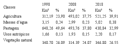 Diante da análise do mapeamento da dinâmica da paisagem do município de Denise pode-se verificar que foram diversas as modificações ao longo de duas décadas (Figura 2 e Tabela 3).