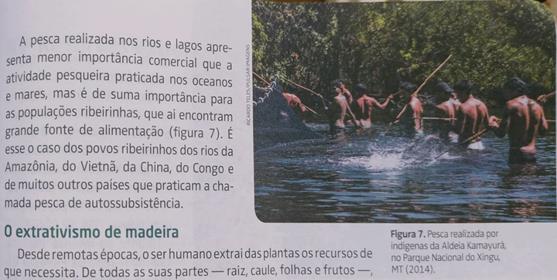 A leitura mais atenta do texto constata que o tema pesca tem relação direta com a imagem referente ao povo Kamayurá e suas técnicas próprias de produzir sobrevivência. O livro limita-se apenas a um amontoado de informações sobre a pesca realizada por microssociedades, como prática que difere da grande produção.