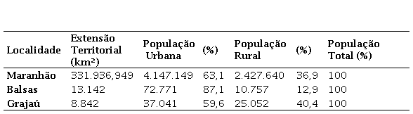 Os dados do Instituto Brasileiro de Geografia e Estatística – IBGE (2010) colocam Balsas em quarta posição (87,1%) no ranking dos municípios com maior taxa de população residente em cidades ou áreas consideradas urbanas, dentre os mais populosos do Maranhão. Podemos inferir dessa análise que o agronegócio em Balsas foi o principal indutor da migração campo-cidade desde a década de 1980, enquanto cerca de 40% da população do município de Grajaú encontra-se com residência fixa no campo. Apesar disso, a extensão territorial de Grajaú, associada às condições favoráveis para a implantação do agronegócio e à flexibilização das leis ambientais, bem como o arrendamento e compra de terras, vêm expandindo os cultivos de commodities e o des-re-florestamento para plantio de eucalipto com a finalidade de produzir carvão ou fornecer matéria-prima para a Suzano Papel e Celulose, cujas instalações encontram-se em Imperatriz.