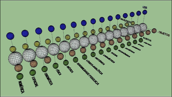 Estas esferas modais são identificadas de 15 formas diferentes: numérica, espacial, cinemática, física, biótica, sensitiva, analítica, histórica, linguística, social, econômica, estética, jurídica, ética e credal (Figura 1).