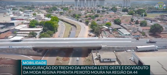 Além disso, recentemente, a Prefeitura de Goiânia inaugurou uma grande obra de mobilidade para a região, conforme figura 3, favorecendo o deslocamento e dinamizando os fluxos de carros, ônibus, caminhões e pessoas. A inauguração do novo trecho da Avenida Leste-Oeste e do Viaduto da Moda Regina Pimenta Peixoto Moura, desafogam as pequenas vias do interior do comércio e oferecem maior comodidade para a circulação de pessoas no polo de moda, além de interligar importantes centralidades de Goiânia, como o polo de moda da Avenida Bernardo Sayão.