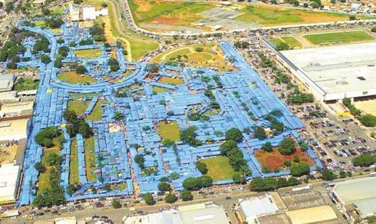 A fixação da feira na Praça do Trabalhador em 1995, proporcionou melhor comodidade aos clientes e aos feirantes visto que o espaço disponível era bem maior. Além disso, houve a padronização da cor das lonas das barracas (azul) e distribuição das barracas por setores, 18 áreas distintas de acordo com o segmento (MAIA; COELHO, 1997). Os segmentos eram: alimentação, confecções, calçados, bijuterias, artesanatos, móveis e outros. Assim, os feirantes se organizavam e o fluxo era mais confortável para os clientes, conforme Figura 4.