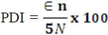 Where, n = individual ratings, N= total number of leaves/ plant; 5= maximum rating