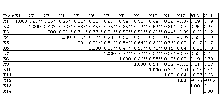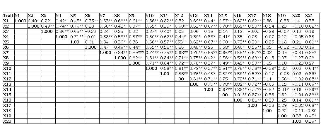 The study of the association of component characters with a complex trait like yield is very helpful for ease of gainful selection in any breeding programme. It has been established that the structure of yield must be probed through its components rather than yield. The concept of correlations was elaborated by Fisher (1918) and Wright (1921).