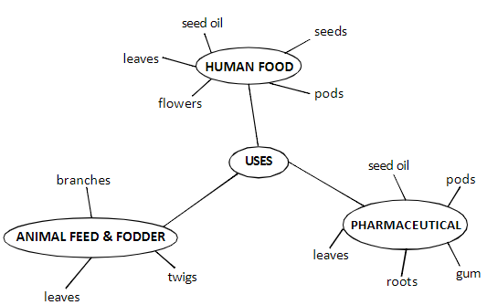 Different plant parts (leaves, twigs or branches etc.) of this tree have variable concentration of nutrients. Hence, the fodder mixtures containing different proportions of Moringa plant parts provide an array of nutrition. For example, mixing of Moringa leaves with soft twigs in fodder provides lower CP and higher NDF contents, whereas mixing Moringa leaves with seed cake in fodder provides higher CP contents (Murro et al., 2003 and Fujihara et al., 2005). Depending upon the nutritional requirement of an animal; specific combination of Moringa plant parts can be given to the animal so that it can utilize the fodder in a best way. As for an example, moringa leaves with twigs having low crude protein can be given to dry cows, requiring low nutrient fodders.