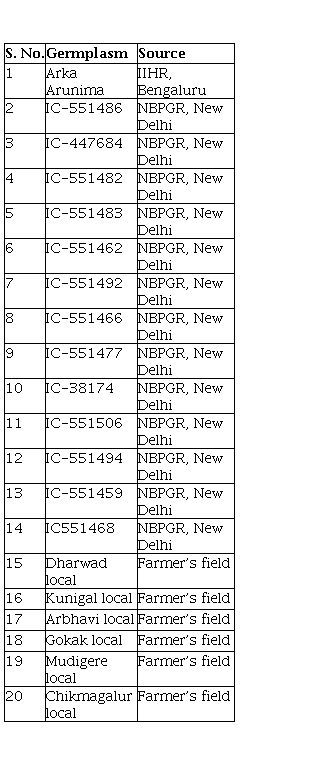 The experiment was laid out in randomized block design (RBD), with two replications during summer, 2019. The genetic factors viz., range, mean, phenotypic coefficient of variation (PCV), genotypic coefficient of variation (GCV), heritability (h2), genetic advance (GA) and genetic advance as per cent mean (GAM)were calculated. The details of genotypes used in the study are presented in the Table 1.
