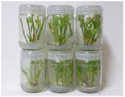 Present investigation was carried out in the Plant Tissue Culture Laboratory, Division of Horticulture and Forestry, ICAR-Central Island Agricultural Research Institute, Port Blair, Andaman and Nicobar Islands, India during 2018-19. Chemicals including salts of MS medium, plant growth regulators, carbon sources, gelling agents etc. were procured from M/s. HiMedia Laboratories, Mumbai, India. Borosilicate culture bottles of 200 ml capacity with polypropylene screw caps were used for culture incubation.