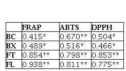 The high correlation shown by both TP and TF, as determined by the three techniques, indicates that both compounds are important contributors to the antioxidant activity of prickly pear fruit.
