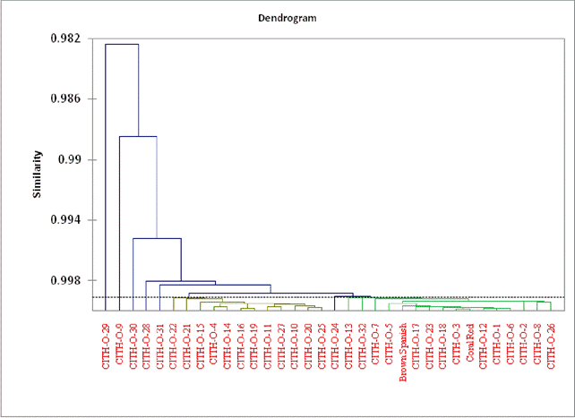 Genotypes CITH-0-29, CITH-0-26, CITH—8, CITH-0-24 and CITH-05 were divergent in cluster position on the basis of Euclidian distance which reflected higher distance among these genotypes and may be used for hybridization to get the better segregates. Singh et al., 2013 and Santara et al., 2017 also reported such variability by using the single linkage cluster analysis in Onion.This genetic diversity analysis would be useful to avoid the selecting parents from genetically homogenous cluster and maintain the broad genetic base for breeding programme in long day onion.