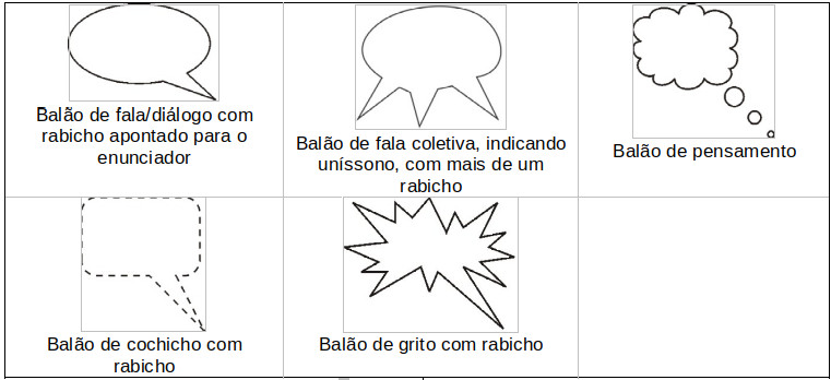 Cada tipo de balão foi criado para expressar uma determinada ação, como pode ser observado na Figura 3: