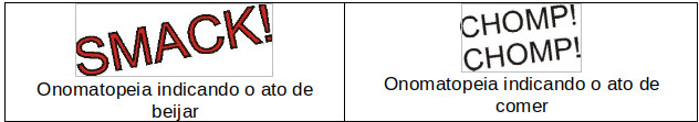 Guimarães (2003) argumenta que o desenvolvimento da linguagem escrita – representação visual codificada e simplificada da fala humana – entre várias figuras de linguagem – como onomatopeia, recurso das tiras e HQ – encontrou sua própria representação gráfica.
