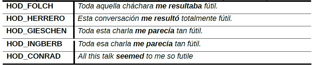 No Quadro 6 se observa a preferência em HOD_Herrero pelo pretérito perfeito. Além disso, observam-se, também, alterações na escolha lexical (resultaba, resultó) para a tradução de seemed, o que, além de representarem mudanças na tradução de seem*, podem indicar estilo do tradutor com efeitos para o estilo da tradução, significando mudança na dêixis temporal, o que pode distanciar ou aproximar o público-alvo.