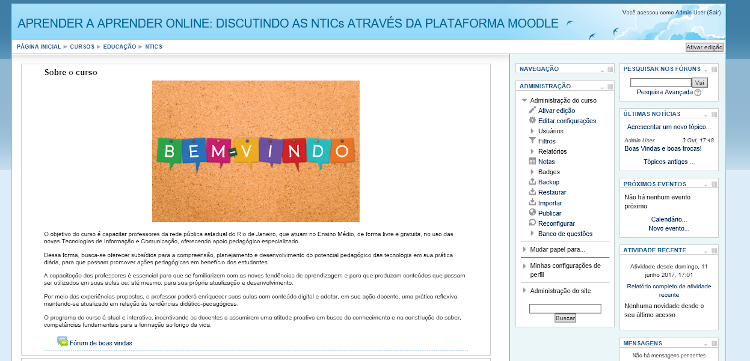 Abstract: The teacher’s training related to the use of digital technologies is an important issue for Basic Education in contemporary times. The new teaching skills are essential to the successful teaching and learning practices, especially in those that involve the use of technologies such as the Internet, mobile devices, online social networks, among other resources. The teacher’s training needs to explore the development of technical and pedagogical skills, guided by the reconstruction of knowledge as a way of relating information to a formative practice, using technology not as an “end” in itself but as a way of changing the pedagogical practice. Thus, this study intends to discuss the use of digital technologies and offer a pedagogical material with proposals to work with ICT through a training course for teachers of the State Secretary for Education of Rio de Janeiro (SEEDUC-RJ), through the Moodle platform, in order to offer strategies to encourage Educators to insert the information and communication technologies into their teaching practices, in a contextualized and pedagogically planned way.