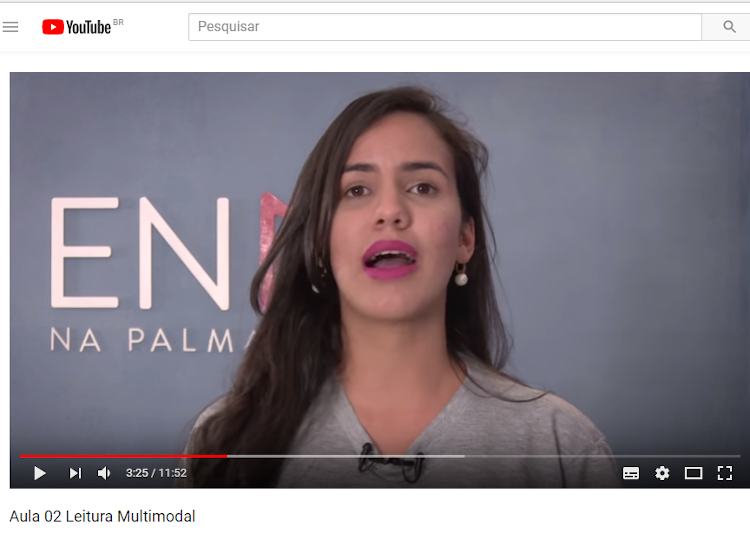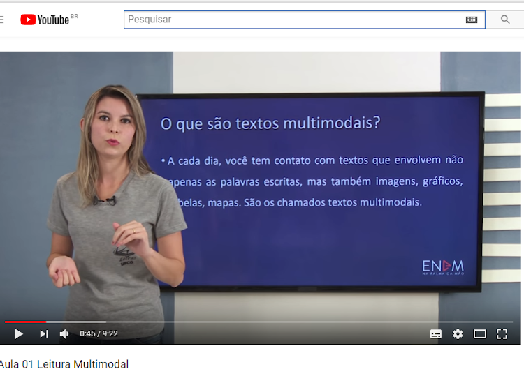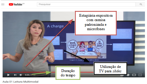 O print em destaque, na Figura 1 “Ilustração da V1”, apresenta a aula 01 “Leitura multimodal” e é representativa das demais videoaulas do projeto.