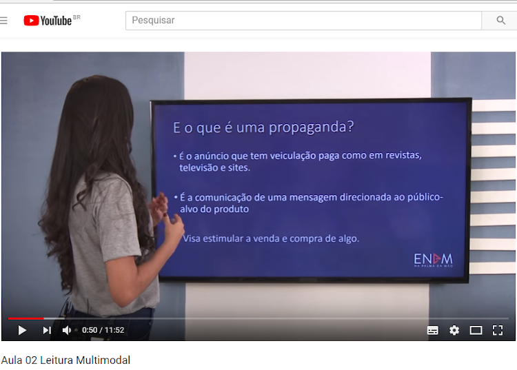 Com base nisso, objetivamos responder às questões: que estratégia de abordagem do conteúdo de Língua Portuguesa prevalece em videoaulas1 do projeto “ENEM na palma da mão”? E qual a relação entre a estratégia de ensino nos eixos de leitura e de escrita e a concepção de ensino em função da recorrência dos conteúdos? De modo geral, visamos analisar o funcionamento didático-pedagógico das videoaulas do referido projeto, e, de forma específica, identificar a estratégia de abordagem presente nas videoaulas, relacionando-a à concepção de ensino de LP . Trata-se de uma análise de quatro videoaulas em que, à luz da Linguística Aplicada, buscamos contribuir com as necessidades da atual sociedade do conhecimento, de forma a refletir acerca de transformações que envolvem professores, alunos e demais sujeitos interligados com o ambiente escolar (BEHRENS, 1999). Realizaremos um estudo qualiquatitativo, sob um viés descritivo-interpretativista, cujo corpus envolve os conteúdos “Leitura de textos multimodais (Tirinha e Charge)”, “Leitura de textos multimodais (Propaganda e Campanha Publicitária)”, “Estrutura e características do gênero dissertativo-argumentativo” e “Coerência, Coesão e Operadores Argumentativos”.