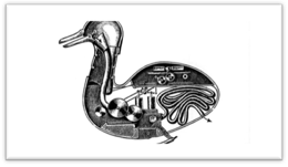 Apesar de as primeiras menções a máquinas de pensar (não humanas) poderem já ser encontradas na Ilíada de Homero – os tripés automatizados de Hephaestus – a questão de saber se as máquinas podem exibir comportamentos inteligentes só será discutida muito mais tarde (MOURA, 2016, p. 11). As primeiras máquinas capazes de simular comportamentos humanos e sociais surgem no século XVIII, desenvolvidas por relojoeiros que visavam com isso desenvolver o seu negócio cativando o interesse da nobreza e da burguesia endinheirada. De entre as várias peças produzidas, o pato de Vaucanson (1709-1782, videFigura 3) continua a ser considerado como uma das mais importantes referências na história da robótica (MOURA, 2016, p. 17).