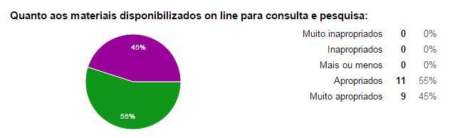 De tal modo, paralelamente a essa avaliação dos participantes quanto aos materiais disponibilizados para pesquisa e consulta, concordamos com Silva e Ferrari (2009, p. 1) ao dizerem o que o planejamento do ensino em meio às TIC representa:
