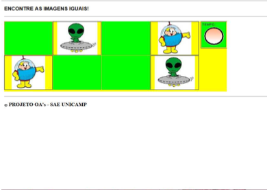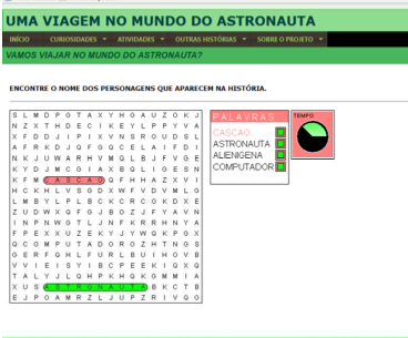Nas outras três abas restantes, o livro digital contava com atividades relacionadas à história: um jogo de caça-palavras, um jogo da memória e uma atividade de construção de história (Figura 1). Também era possível que a criança surda encontrasse informações em Libras sobre como navegar e ícones que, ao serem clicados, apresentavam vídeos com a tradução para a Libras das informações relacionadas às abas escritas em Português.