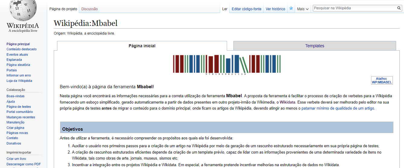 Nesse sentido, é possível também observar a experimentação com o conceito de narrativas estruturadas na Wikipédia que, embora não seja um veículo jornalístico nem tenha esse objetivo, é uma plataforma relevante na lógica de consumo de informação contemporânea, utilizada para obtenção de conteúdos de cunho enciclopédico sobre variadas temáticas. Por conta da estrutura aberta e colaborativa dos projetos Wikimedia, é possível fazer uso de seus recursos e ilustrar o funcionamento de narrativas estruturadas a partir da ferramenta Mbabel, desenvolvida no Centro de Pesquisa, Inovação e Difusão em Neuromatemática (CEPID NeuroMat), no contexto da bolsa José Reis de Incentivo ao Jornalismo Científico (Mídia Ciência) da Fundação de Amparo à Pesquisa do Estado de São Paulo (FAPESP), conforme será tratado a seguir.