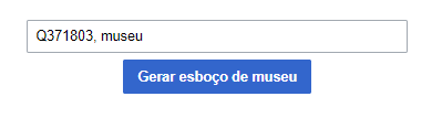 A narrativa estruturada de museus deve ser utilizada como suporte para a elaboração de verbetes sobre museus em sua página de testes. Ela gera automaticamente um rascunho de verbete que deverá conter informações como local, tamanho do acervo, número de visitantes anuais, atual curador, estilo arquitetônico, prêmios recebidos, situação patrimonial etc., de acordo com dados disponíveis em seu respectivo item no Wikidata. Além disso, esse rascunho estruturado contém um Listeria com até 100 peças de acervo expostas no museu. As seções sugeridas para esse tipo de verbete são descrição, história, acervo, arquitetura e administração[9].