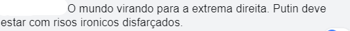 O interactante mantém a progressão temática em seu comentário ao fazer uma alusão à informação ‘extrema direita’, que determina a base ideológica do partido Republicano do então candidato Donald Trump. Observa-se que a alusão é uma das particularidades da intertextulidade, em que o uso da informação ‘extrema direita’ estabelece relação contextual (FIORIN, 1994) com a discussão proposta no artigo da jornalista Cantanhêde. Assim, o exemplo do comentário confirma a relação metatextual com o artigo da jornalista, publicado no perfil da mesma no Facebook, e organiza um par metatextual.