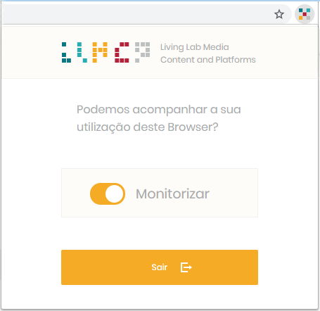 A extensão e o formulário foram planeados e concebidos de forma a preservar o anonimato e a confidencialidade dos utilizadores e da informação recolhida, segundo o Regulamento Geral de Proteção de Dados (RGPD), em vigor desde 25 de maio de 2018, na União Europeia (EU). Uma das funcionalidades implementadas na extensão, por exemplo, permite que o utilizador suspenda de forma imediata e simples a monitorização, com um único comando e sem a necessidade de qualquer intervenção do LLMCP (Figura 2).