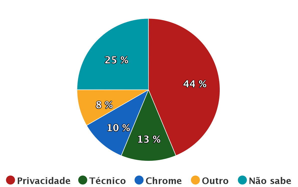 Por outro lado, 44% dos indivíduos abordados não aceitaram participar no painel por causa da ‘preocupação com a privacidade’, mesmo quando explicados que todo o registo e a monitorização são anónimos e seguem o Regulamento Geral de Proteção de Dados (RGPD). Os alunos que ‘não sabem’ exatamente qual o impedimento representam 25% dos inquiridos, seguidos pelos que disseram ter ‘problemas técnicos’ no computador e ‘não utilizar o Google Chrome’ como navegador.