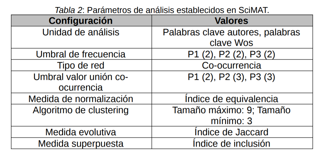 Análisis de rendimiento. Cada una de las palabras clave, tienen a su vez, una cadena de conexiones que marcan la tendencia de dicho nodo, ofreciendo datos sobre el uso que hace la comunidad científica sobre la misma, para ello se estableció unos protocolos de análisis, establecidos en la Tabla 2.